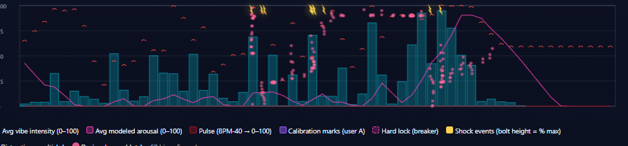 - Decay controls how much arousal you lose over time. Higher = you calm down faster. If you are getting too little stimulation, raise this value. Too much, lower it.